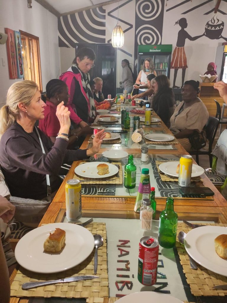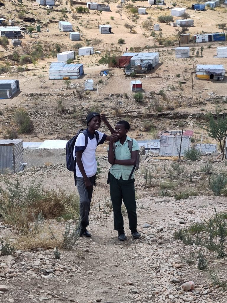 Nach diesen bewegenden Momenten bin ich gemeinsam mit einigen anderen für einen Tag in die Slums von Windhoek gefahren. Das war ein extremer Kontrast: Die Armut, die einfachen Wellblechhütten, improvisierte kleine Läden und Restaurants, kaum Privatsphäre – all das hat mich erschüttert. Trotzdem habe ich so viel Lebensfreude und Stärke gesehen. Frauen und Kinder, die trotz der Umstände lachen, sich gegenseitig helfen und ihre Hoffnung nicht verlieren. Ich durfte sogar erleben, wie mir Rastazöpfe geflochten wurden – ein kleines Stück Verbundenheit, das ich fest im Herzen trage.