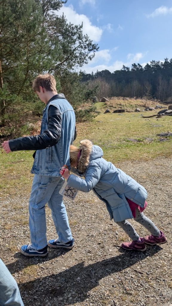 Zwischen hohen Bäumen und mächtigen Steinen entstanden fantasievolle Hütten, kleine Kunstwerke aus Holz und unzählige Freundschaften. Es wurde geschnitzt, geklettert, gesammelt und verhandelt – und zwischendurch landete Calvin sogar kurz im Spiel-Gefängnis, nur um unter großem Gelächter wieder befreit zu werden. Der Wald war an diesen Tagen eine Bühne voller Kreativität, Mut und Lebensfreude.